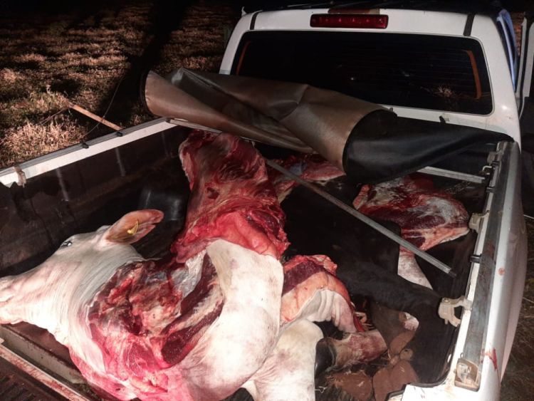 Um animal de gado e partes de outro gado abatido foram encontrados no corpo do referido rolo. O fato foi comunicado por telefone ao Fiscal Hernán Mendoza.