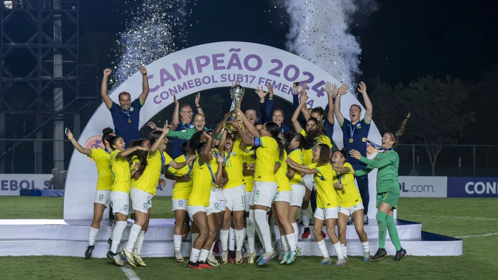 Neste último domingo (31), a Seleção Brasileira Feminina de Futebol sagrou-se pentacampeã do Campeonato Sul-Americano Feminino Sub-17. O título veio com a vitória do Brasil, por 5 a 1, diante do Paraguai na última rodada da fase final do torneio. Os gols brasileiros foram marcados por Juju Harris, Giovanna, Aninha, Kalena e Sofia.