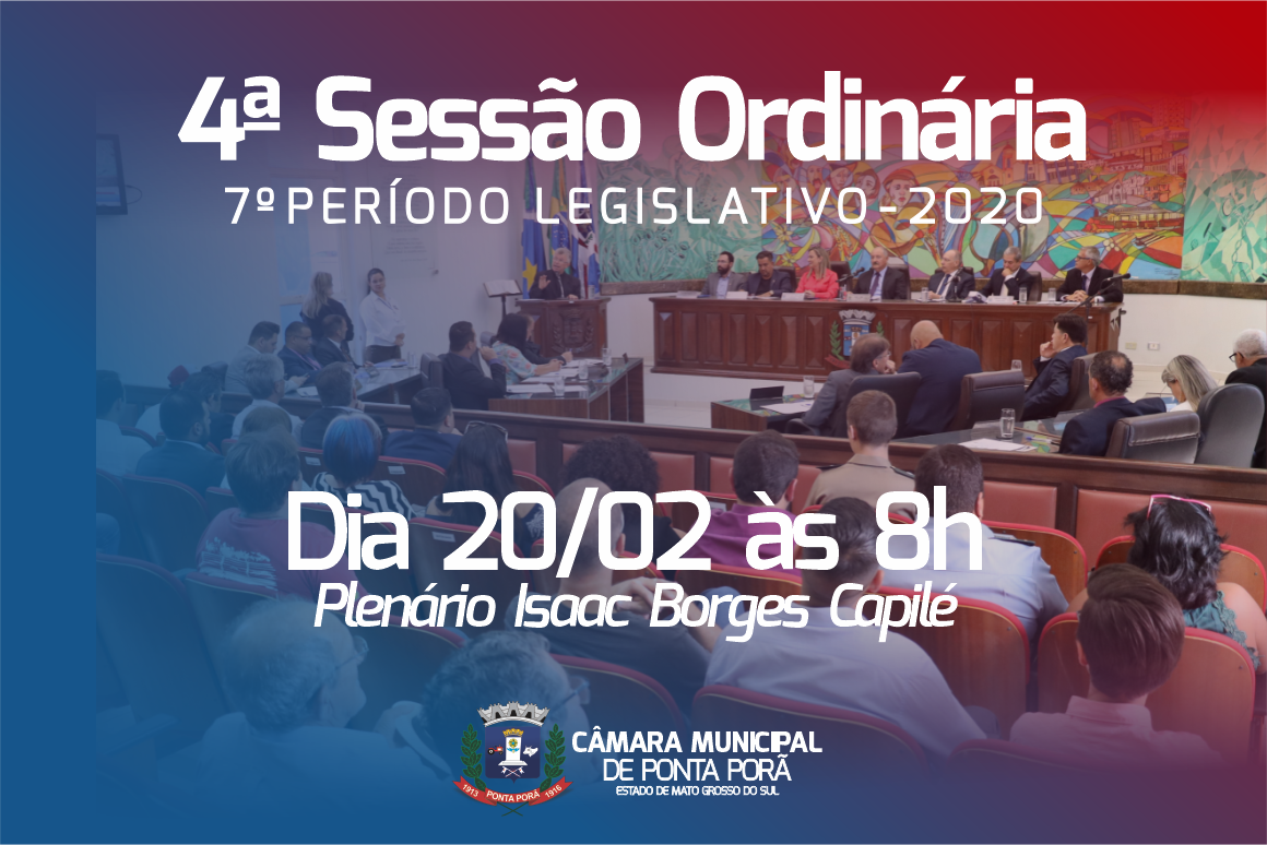 A Câmara Municipal de Ponta Porã, através do presidente Rony Lino Miranda, comunica que em virtude do feriado de Carnaval (25 de fevereiro) antecipará a sessão ordinária para esta quinta-feira, dia 20 de fevereiro às 8 horas.