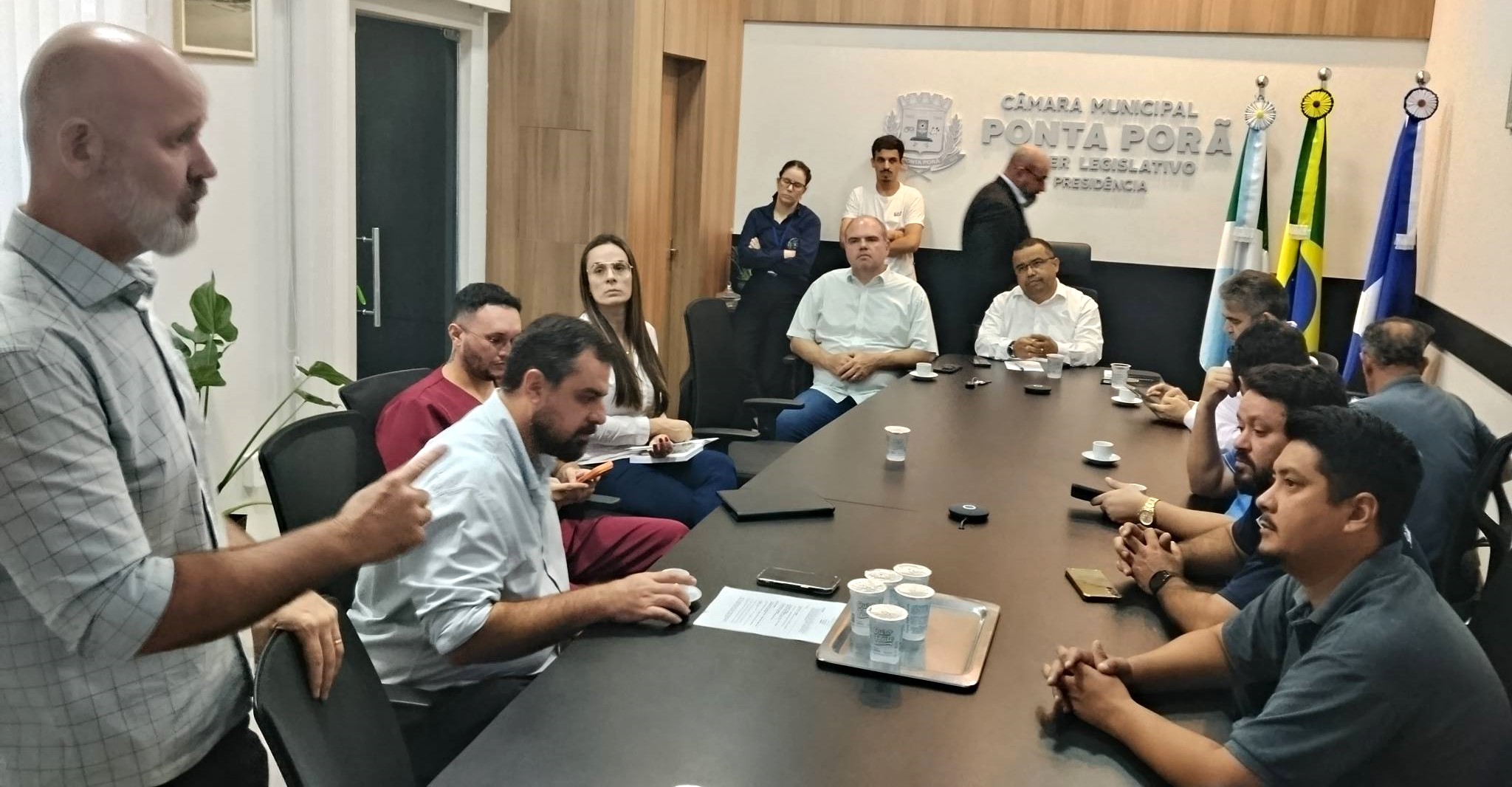 Também participaram da reunião os vereadores Waldecir Fernandes, Marcelino Nunes, Vanderlei Avelino, Edinho Quintana, Carlos Bordão e Daniel Puka Valdez, que apresentaram questionamentos relacionados ao encaminhamento de pacientes para outros centros de saúde. Ao final, Bernabé agradeceu a presença dos diretores do Instituto Mais Saúde e ressaltou a relevância do diálogo permanente entre o Legislativo e as instituições responsáveis pela gestão hospitalar.