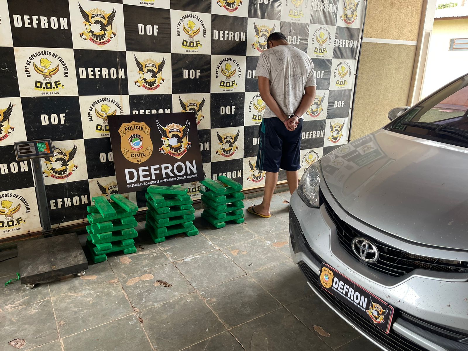 DEFRON, efetua a prisão de receptador de automóveis roubados, recupera automóvel e apreende 54 quilos de maconha, em Ponta Porã