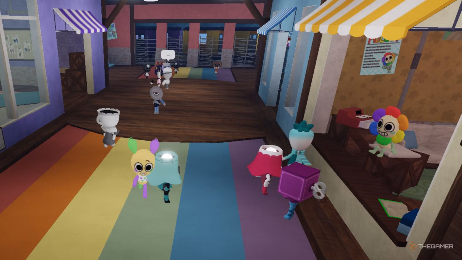 Dandy’s World permite até oito jogadores por partida, cada um escolhendo seu próprio personagem e acessórios.