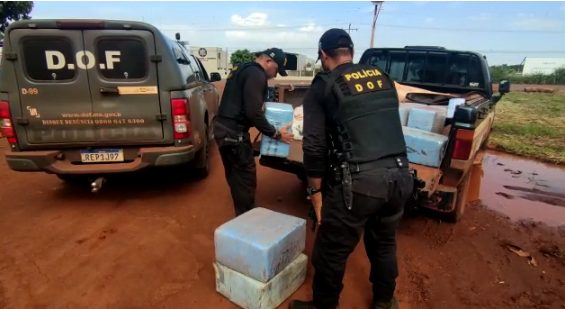 O DOF (Departamento de Operações de Fronteira) apreendeu no início da manhã de hoje (10/03), na zona rural de Laguna Carapã, mais de 504 quilos de cocaína que eram transportadas em uma caminhonete GM/D20.