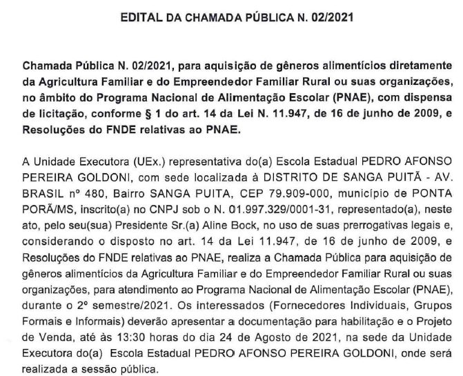 Início Últimas notícias EDITAL DA CHAMADA PÚBLICA N. 02/2021