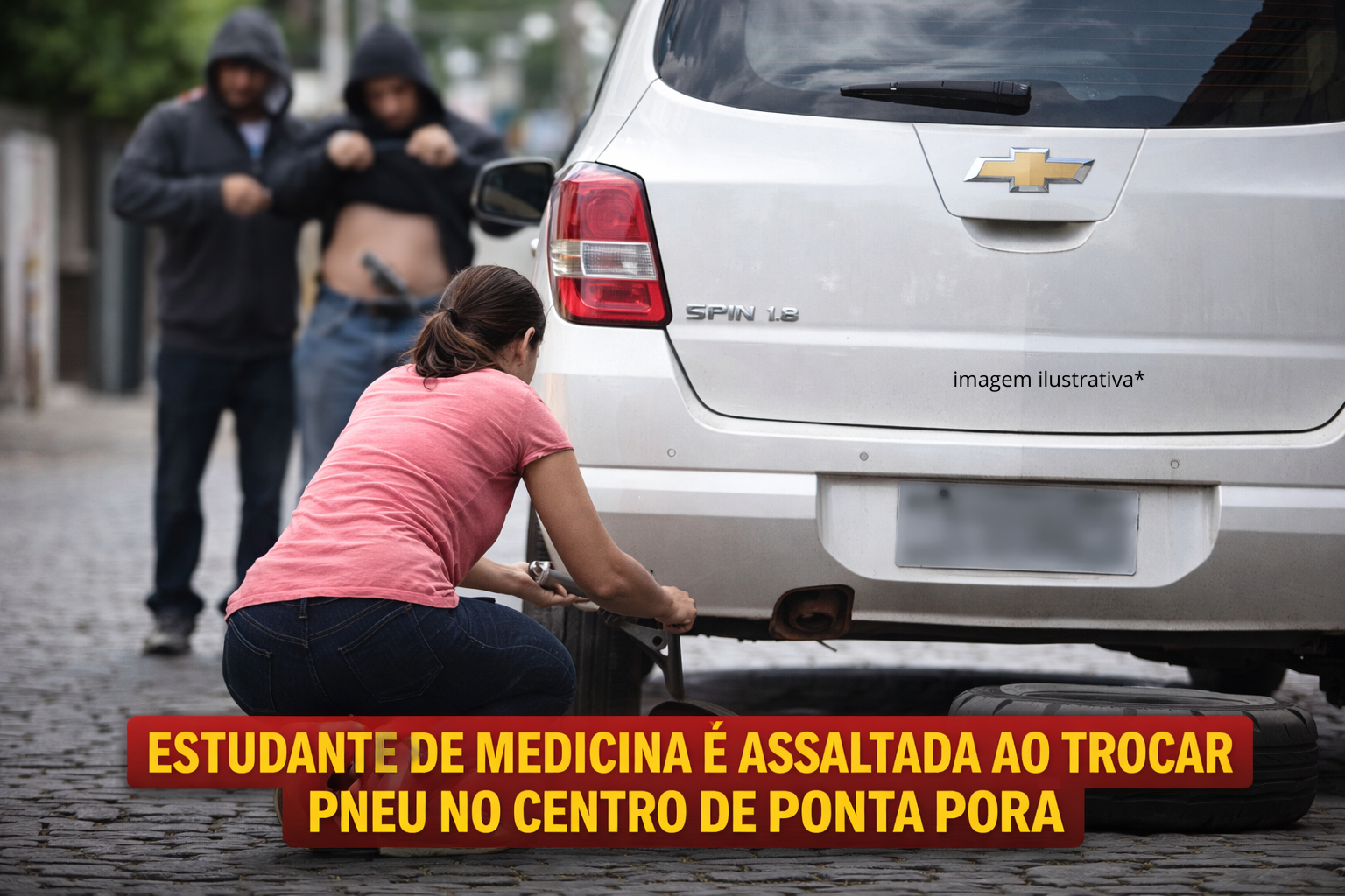 Uma estudante de Medicina, de 44 anos, foi vítima de assalto na tarde deste domingo (5), na região central de Ponta Porã, após parar o carro para trocar um pneu furado.
