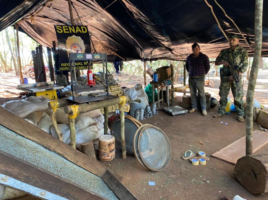 Um complexo de drogas composto por 5 campos equipados com logística para a produção de maconha em grande escala foi descoberto durante operação rural por Agentes Especiais da SENAD lotados no Escritório Regional em Pedro Juan Caballero.