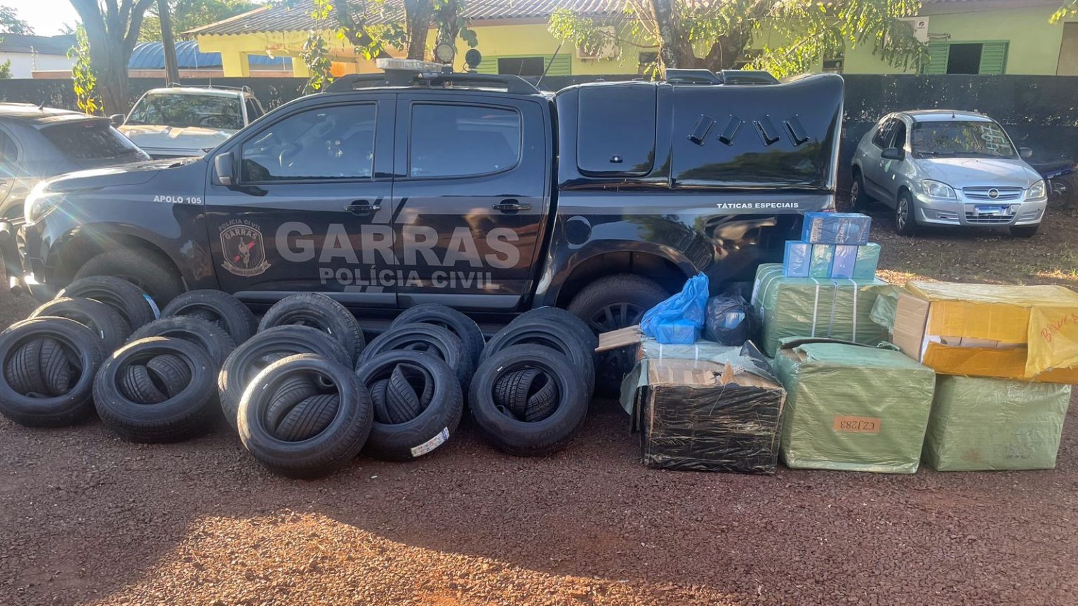 Na última segunda-feira (09), a Polícia Civil, por intermédio da Delegacia Especializada de Repressão a Roubos a Bancos, Assaltos e Sequestros (GARRAS), apreendeu, na rodovia MS 164, em Ponta Porã, região da fronteira Brasil/Paraguai, 69 pneus, 1 fardo com diversos cigarros eletrônicos, 7 fardos contendo, aproximadamente, 10.000 óculos, e 1 lente de câmera fotográfica profissional, em um comboio de veículos que transportava produtos contrabandeados do Paraguai.