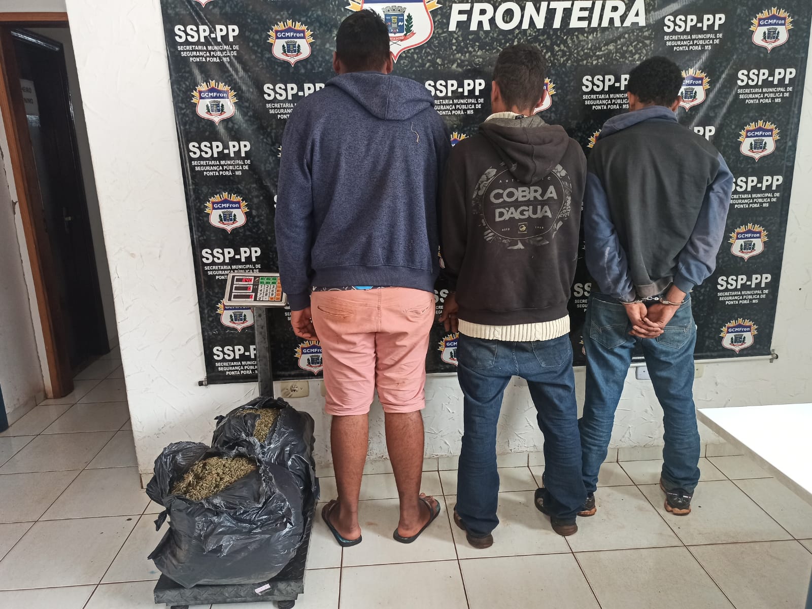 Ao revistar imóvel foram encontrados dois (02) sacos plásticos de substância análogas à maconha que após a pesagem totalizou oito quilos e quatrocentos gramas (8,400 kg). O autor M.G.B.C. (19) se identificou como proprietário da residência e disse também que a substancia encontrada era de sua propriedade. Os autores E.G.M. (19) e G.S.G. (18) confessaram que M.G.B.C. (19) passou a dica da motocicleta que estava na frente da escola Orlando Mendes Gonçalves, que a mesma estava fácil de ser furtada, e que ele já havia a destravado. Foi quando E.G.M. (19) e G.S.G. (18) foram até o local, realizaram o furto e a conduziram até a residência encontrada. Informaram também que o primo de G.S.G. (18) conhecido como J.I.C.S. (24) paga para que eles furtem motocicletas que são levadas para serem vendidas em Dourados-MS. Os mesmos Já haviam retirado a placa da motocicleta placa SAO 7390 e os retrovisores. Diante dos fatos todos os envolvidos no furto juntamente com a motocicleta foram encaminhados para o 1° D.P. Civil para as providências cabíveis. A ocorrência aconteceu em Ponta Porã-MS, cidade situada a 320 km da capital Campo Grande.