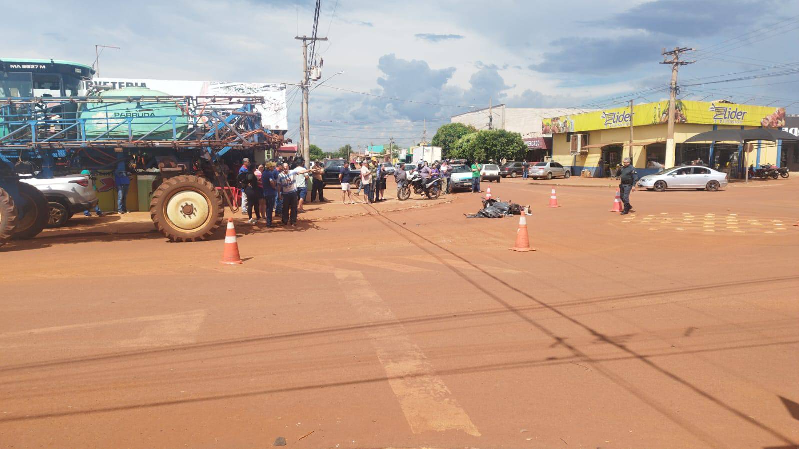 Um grave acidente entre uma motocicleta e um pulverizador de veneno agrícola foi registrado há pouco dentro do núcleo urbano de Nova Itamarati, em Ponta Porã (MS).