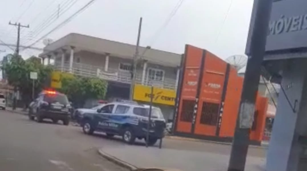 Uma viatura Policial Militar que após ser acionado na segunda-feira via CIOPS diligenciou ao local do fato onde o vítima fatal (desconhecido) se encontrava ao solo, atrás do ponto de taxi na área central da cidade envolto por uma poça de sangue.