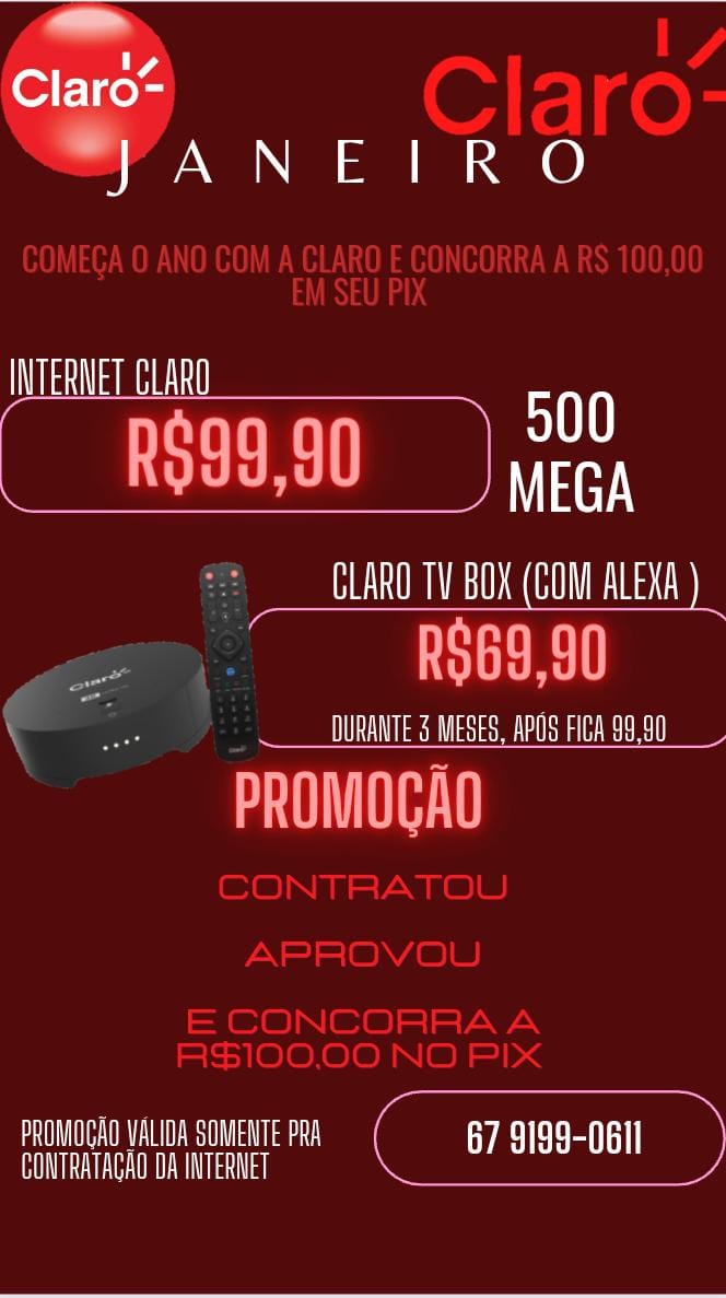 E para você que já é cliente claro controle adquirindo sua Internet de 500 MG ganha uma linha de telefone fixo 100% gratuito com ligações liberadas para todo o Brasil tanto para fixo quanto para celulares.