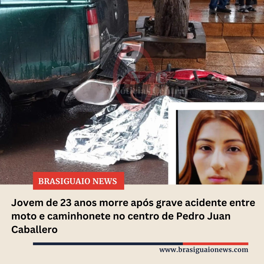 Jovem de 23 anos morre após grave acidente entre moto e caminhonete no centro de Pedro Juan Caballero