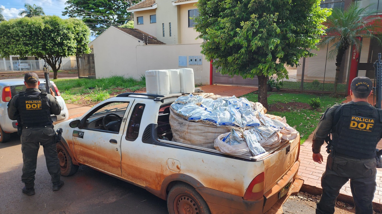 Policiais militares do DOF (Departamento de Operações de Fronteira) apreenderam na tarde deste sábado (10) na avenida Monte Alegre, Jardim Paulista em Dourados, um veículo Fiat Strada carregado com 800 quilos de defensivos agrícolas.