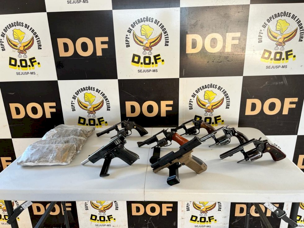 Indagada sobre o armamento e a droga, a mulher afirmou que havia pegado os materiais em Ponta Porã e levaria até Campo Grande, onde receberia R$ 1,8 mil pelo transporte.