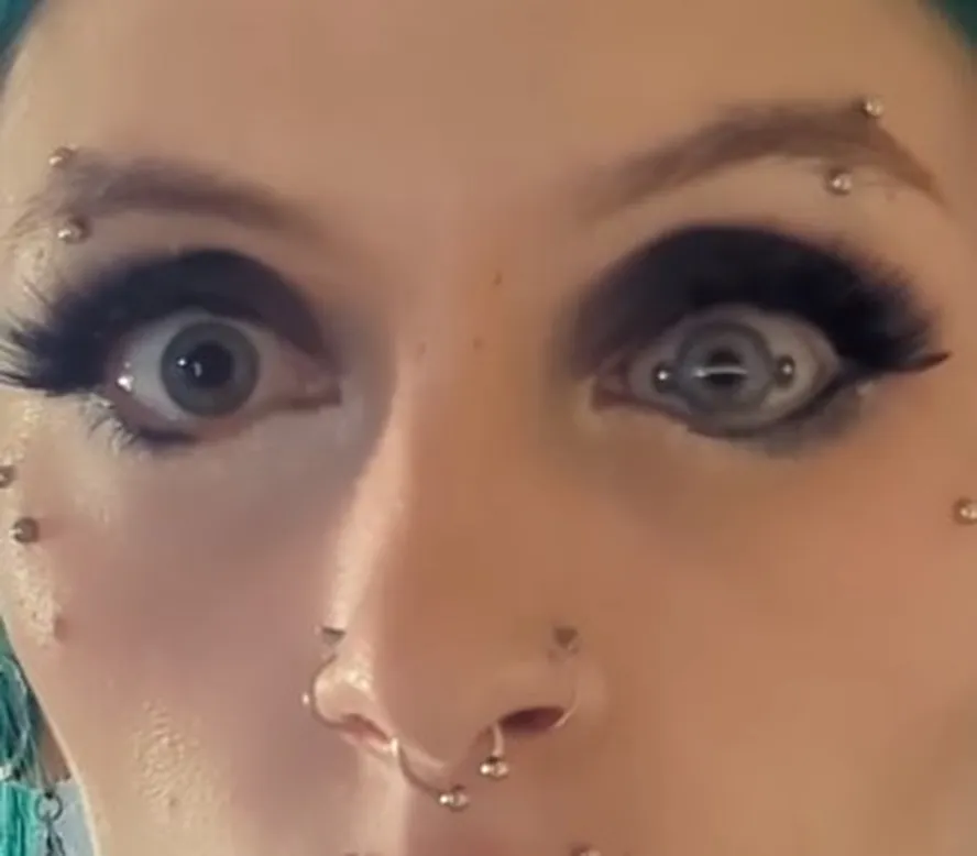 Bree, moradora de Minnesota (EUA), tem vários piercings no rosto. Mas nenhum deles chama tanta atenção quanto o piercing no globo ocular esquerdo.