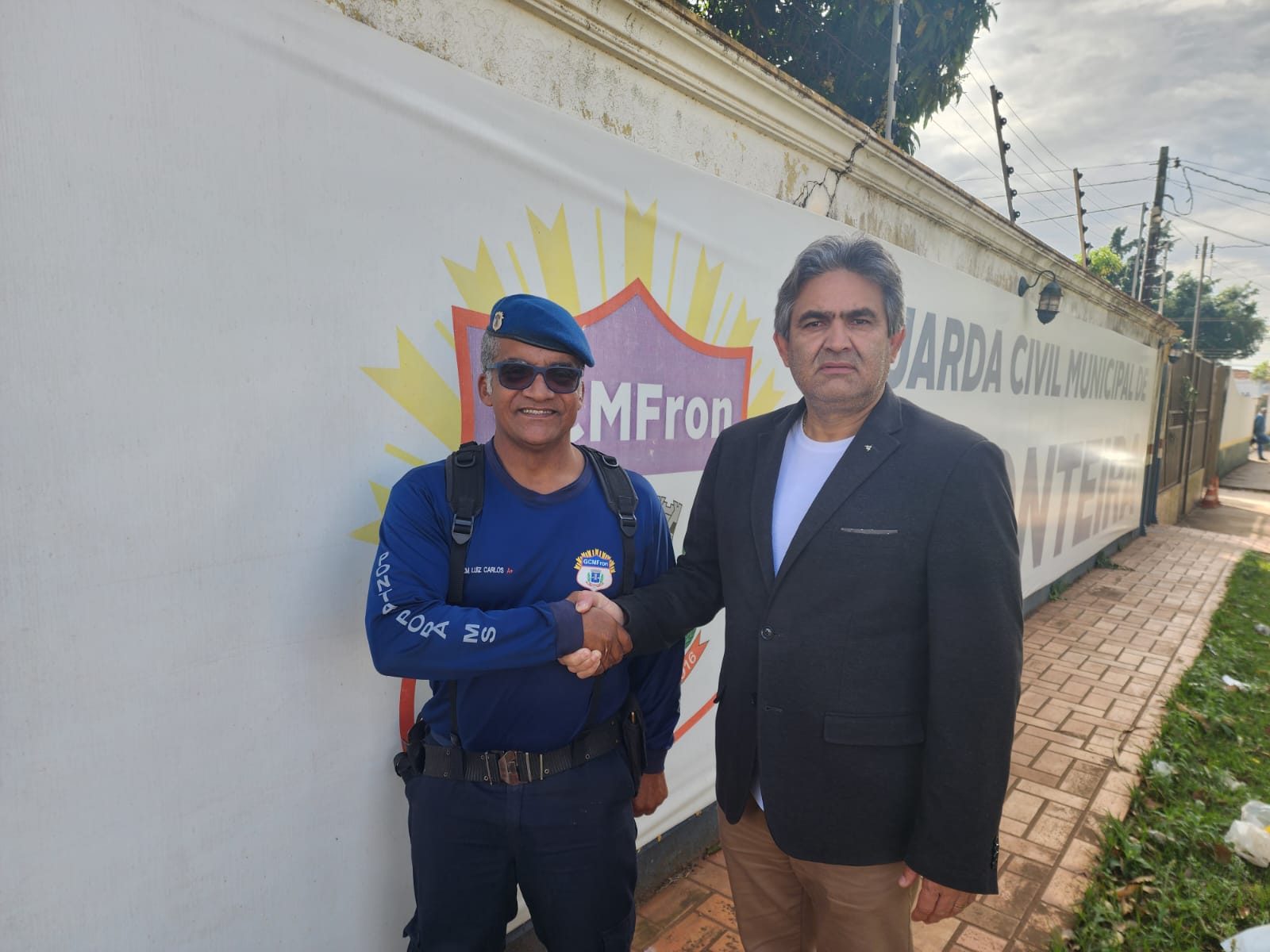 O Secretário Municipal de Segurança de Pública de Ponta Porã-MS Marcelino Nunes de Oliveira agradece ao ex-Comandante da GCMFron Juliano Luiz Perez Gomes pelos bons serviços prestados durante o período de mais de 8 anos que ele esteve à frente da Instituição Guarda Civil Municipal de Fronteira.