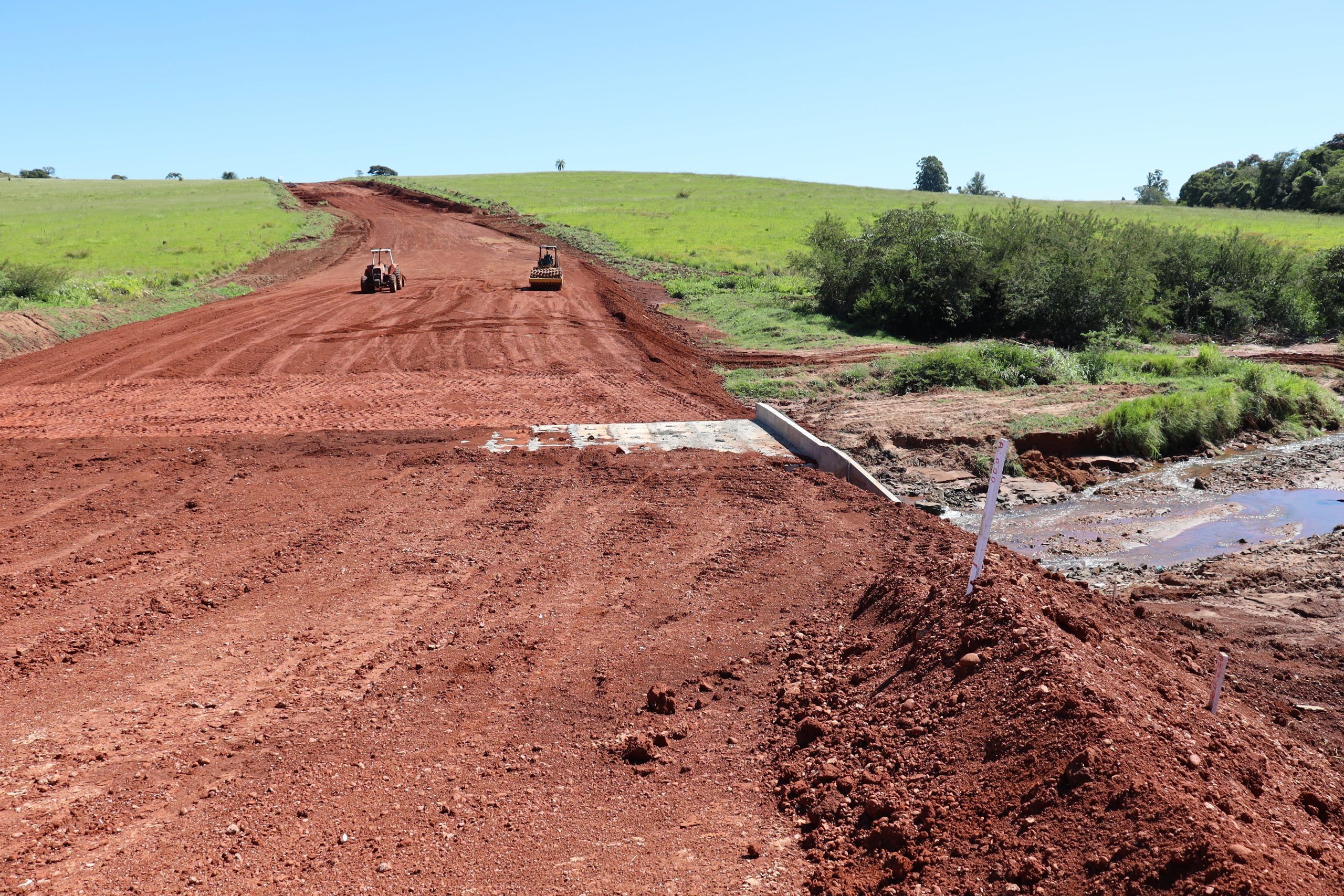 “Fui verificar a instalação da galeria celular de concreto armado que garante a travessia sobre o Córrego Pegua Jho. O trecho de 8 km tem uma ponte e duas travessias. Obra em andamento, afirmou o prefeito.