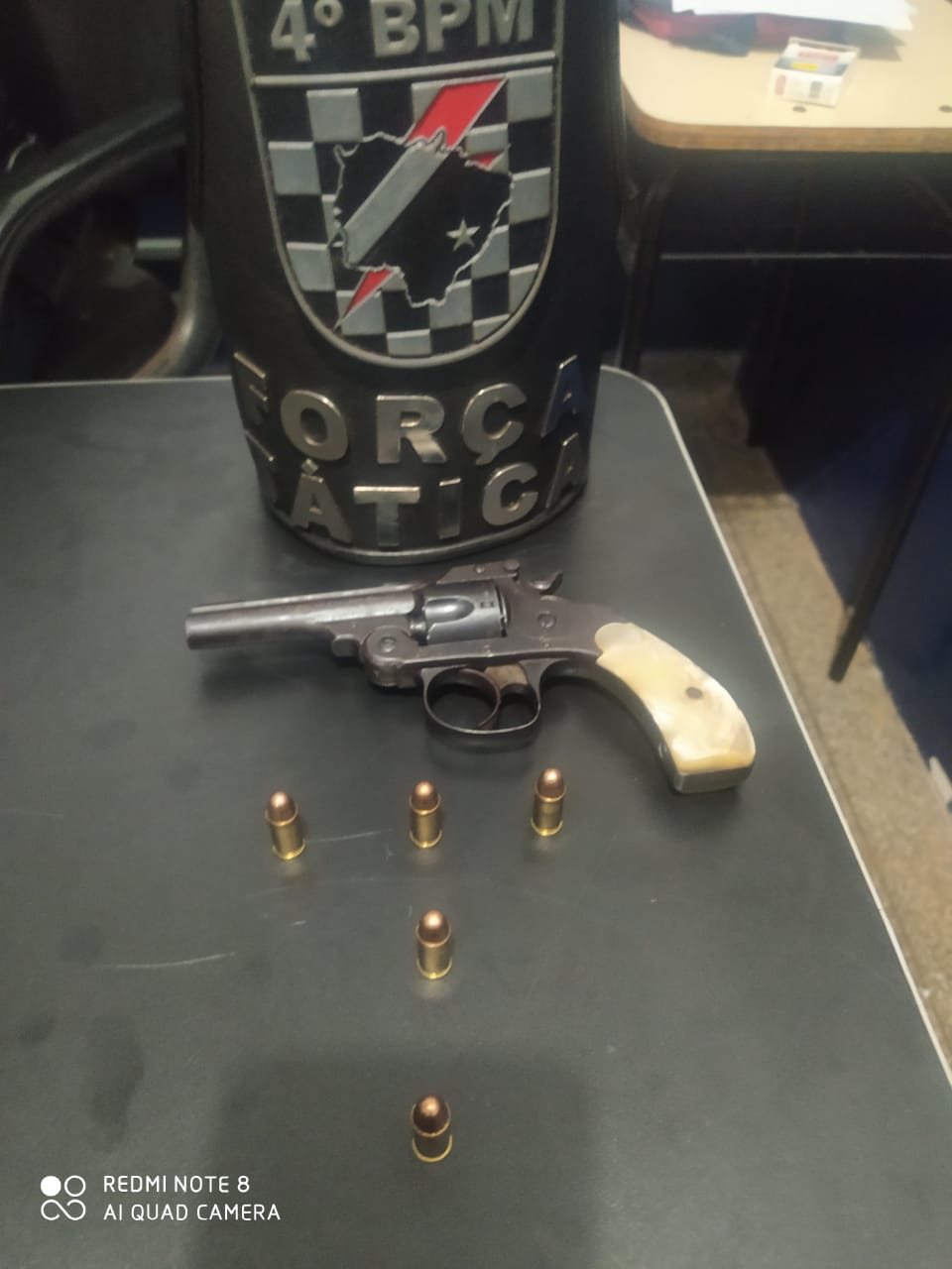 Diante dos fatos, o mesmo recebeu voz de prisão, sendo encaminhado ao 1° DP para as medidas cabíveis, juntamente com a arma de fogo.