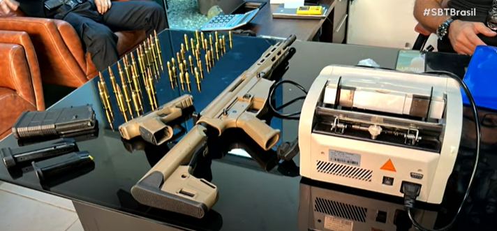 Durante a operação, a polícia apreendeu três armas, incluindo um fuzil, além de munições, R$ 180 mil em dinheiro, US$ 3 mil, relógios, celulares, veículos e motos de luxo. O cunhado de um dos investigados foi preso por porte ilegal de arma de fogo.