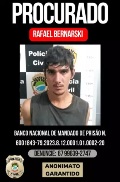A 1ª Delegacia de Ponta Porã publicou cartaz de procurado por Rafael Bernarski, suspeito de ter matado Salvador Manoel dos Santos, 87, no dia 19 de maio deste ano e de ter deixado o corpo da vítima em uma fazenda na cidade de Ponta Porã .