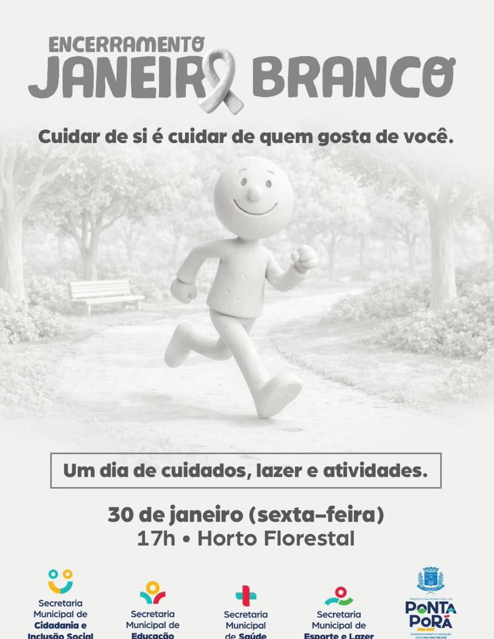 A Prefeitura de Ponta Porã, por meio de todas as secretarias municipais, vem desenvolvendo ao longo deste mês uma série de ações alusivas ao movimento Janeiro Branco, que tem como objetivo colocar a saúde mental no centro das prioridades da sociedade. Neste ano, a campanha reforça que cuidar da mente deve ser um compromisso coletivo, adotando como tema paz, equilíbrio e saúde mental.