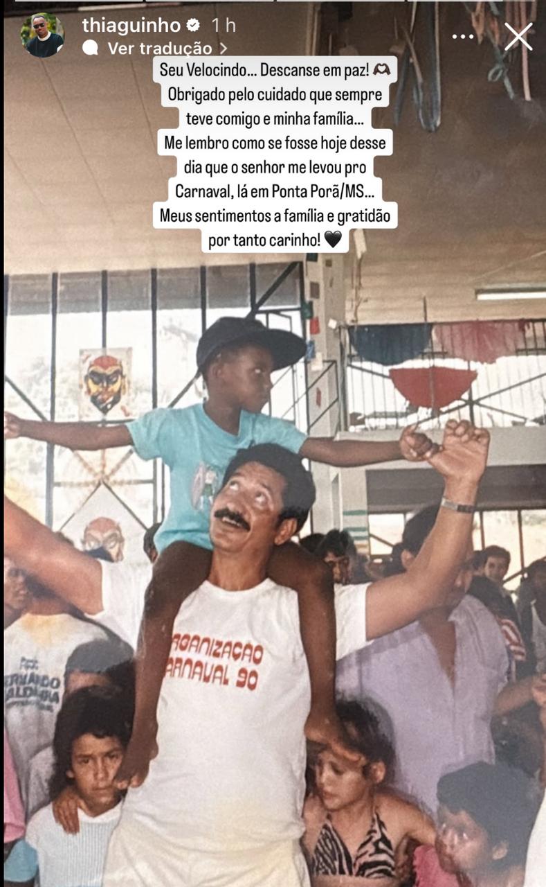 A manifestação de Thiaguinho reforça o carinho e o respeito que Velocindo conquistou ao longo da vida, não só entre os moradores de Ponta Porã, mas também entre artistas e personalidades que tiveram o privilégio de conviver com ele.