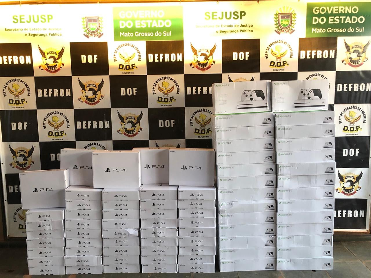 Dourados (MS), 21 de agosto – Policiais Militares do Departamento de Operações de Fronteira (DOF) apreenderam, na tarde de ontem, uma camionete S10 e dois veículos Fiat Strada, carregadas com videogames de origem estrangeira, sem a documentação de regularidade fiscal.