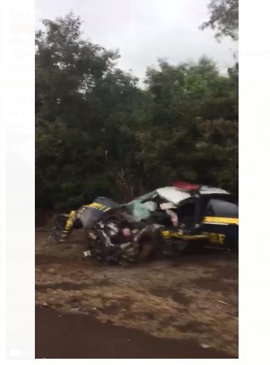 Na viatura estavam três policiais que encerravam o turno de trabalho, quando houve a colisão entre o carro que bateu na latera do caminhão ficando com a parte frontal destruída. Com o impacto da batida, a viatura foi parar às margens da rodovia.